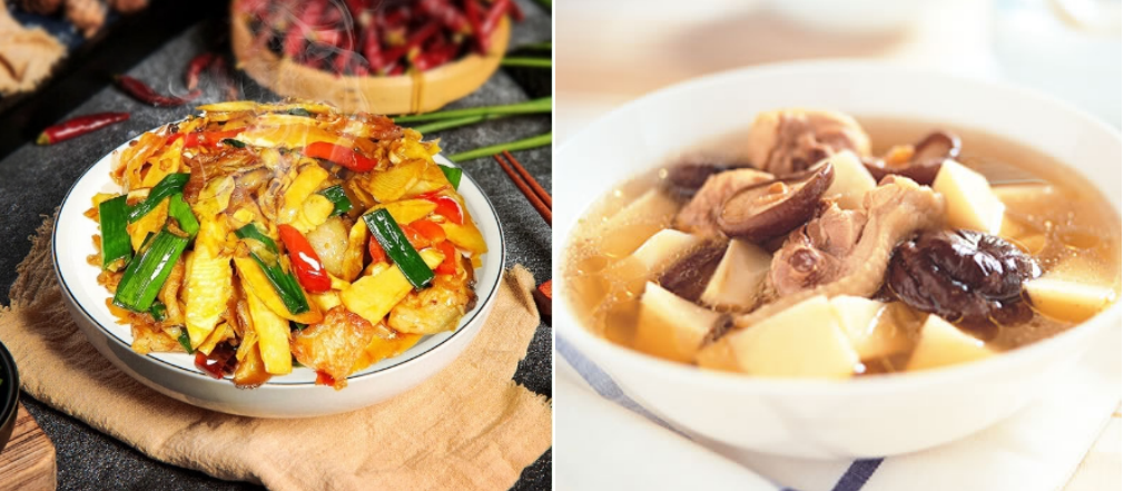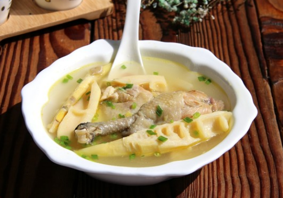 4、推荐烹饪:宜焯水断生,汤汁多为淡黑色。竹笋酥肉、竹笋肉片汤、竹笋炖鸡、竹笋烧鸭等为常见做法。