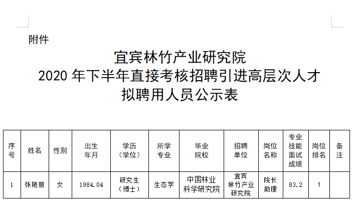 宜宾市林业和竹业局 关于樱花动漫大全直接考核招聘工作人员拟聘用人员的公示